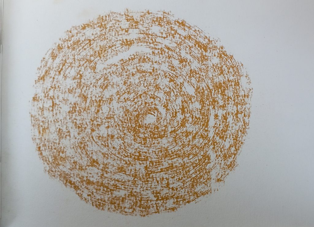 Zum Bild: Automatische Zeichnung im Skizzenbuch, Pastellkreide auf Papier, 4.2.26.